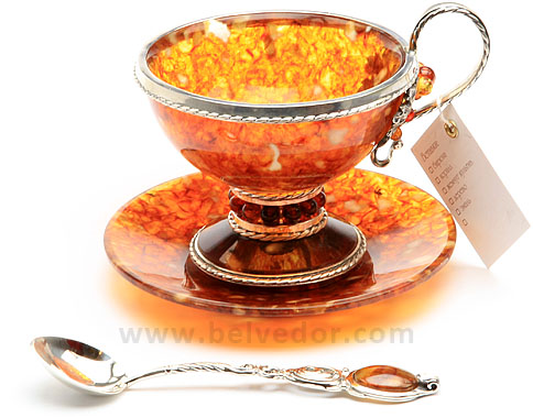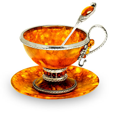 Чайный набор из янтаря "виноград" на 6 персон (серебро)