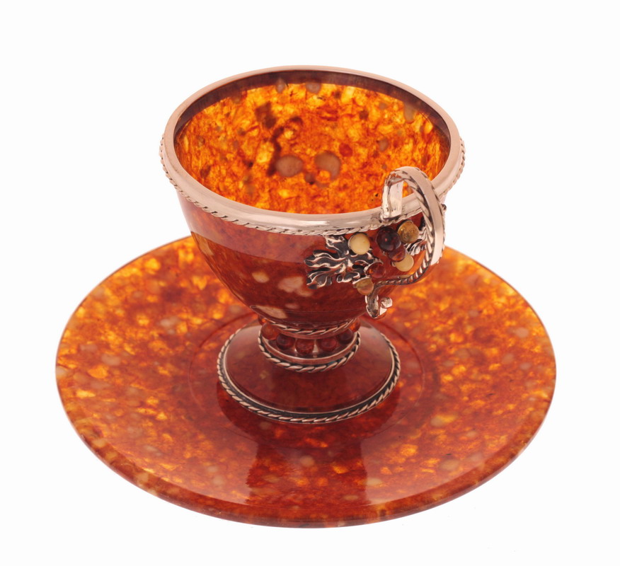 Чайный набор из янтаря "виноград" на 6 персон 120мл. (серебро)