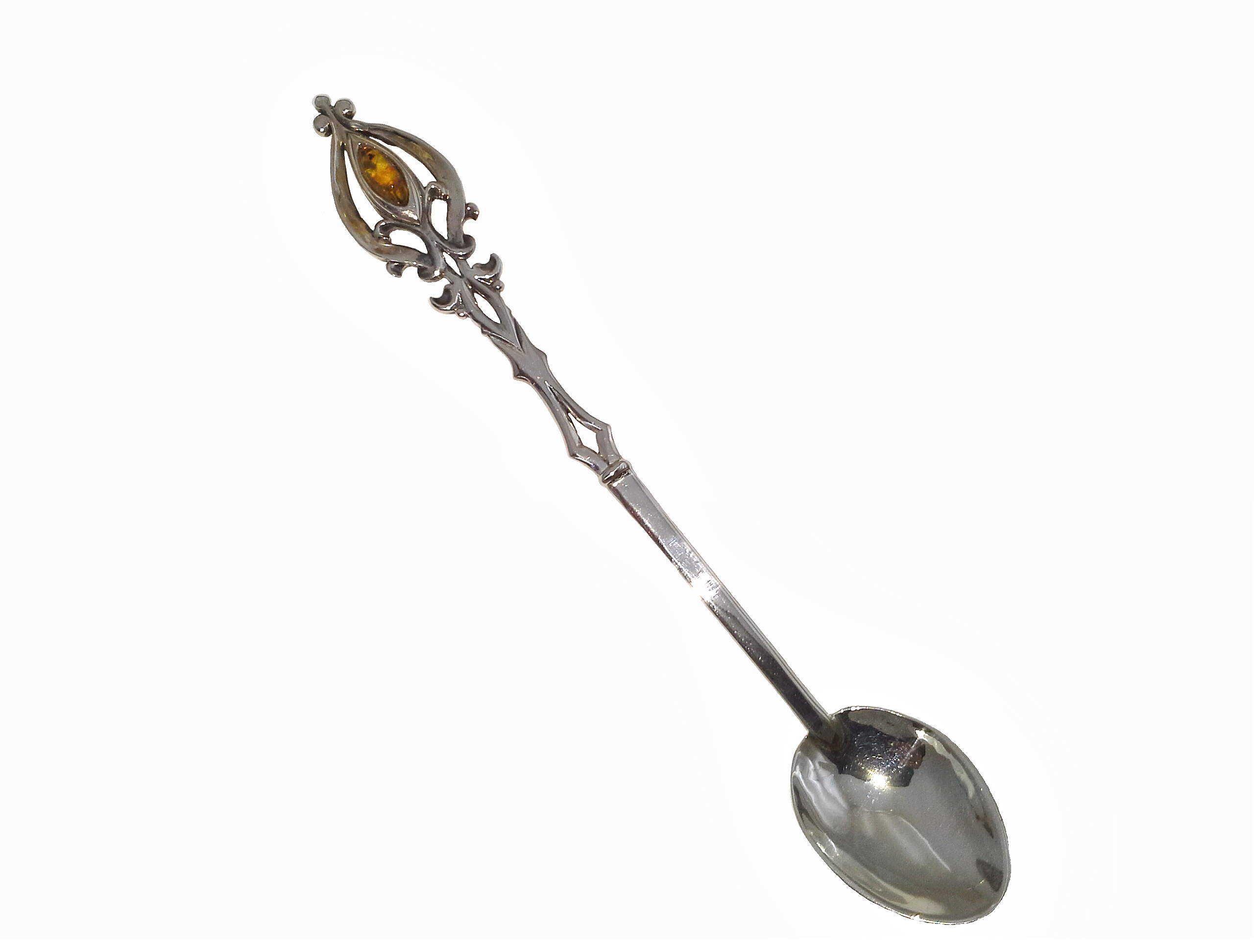 Ложечка серебряная с янтарем. Серебро 875 пробы или белая ювелирная бронза. Вставка - янтарь. Вес серебра в изделии - 22,4 гр. Длина ложечки - 13 см. Поставляется в подарочном футляре. В случае отсутствия товара на складе срок изготовления от трех недель.