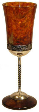 Бокал для вина "антик" из янтаря. Высота - 15,00 см., диаметр - 5,00 см., Объем - 50 мл. Состав: натуральный янтарь,белая ювелирная бронза или серебро 875 пробы. Вес серебра в изделии - 47 гр. Поставляется в подарочном футляре. В случае отсутствия товара на складе срок изготовления от трех недель.