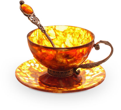 Набор для чая из янтаря на 1 персону (серебро)