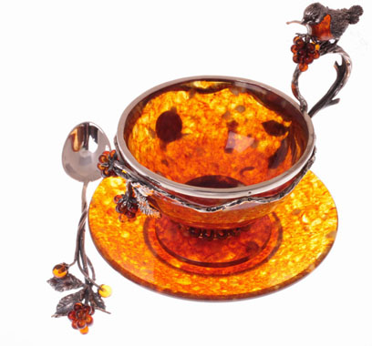 Чайный набор из янтаря "малиновка" на 2 персоны (серебро)