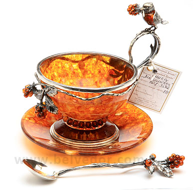 Чайный набор из янтаря "малиновка" на 3 персоны (серебро)