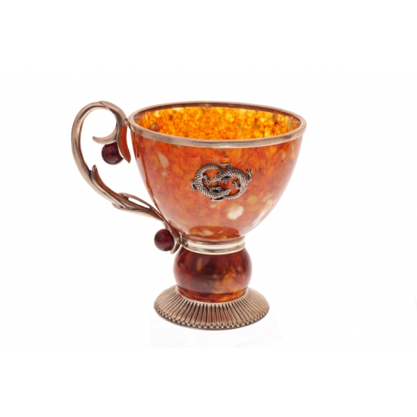 Чашка "саламандра" из янтаря и ювелирной бронзы
