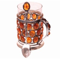 Подстаканник с ложечкой из янтаря
