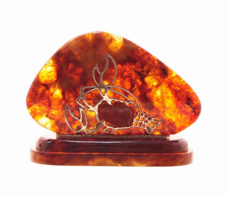Визитница "рак". Состав: натуральный янтарь, серебро 875 пробы / белая ювелирная бронза. Вес серебра в изделии - 13,77 гр. Высота: 6 см, ширина: 8 см. Поставляется в подарочном футляре. В случае отсутствия товара на складе, срок доставки - от 3 недель.