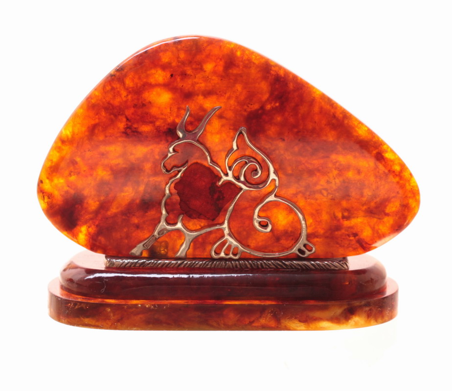 Визитница "козерог". Состав: натуральный янтарь, серебро 875 пробы / белая ювелирная бронза. Вес серебра в изделии - 13,84 гр. Высота: 6 см, ширина: 8 см. Поставляется в подарочном футляре. В случае отсутствия товара на складе, срок доставки - от 3 недель.