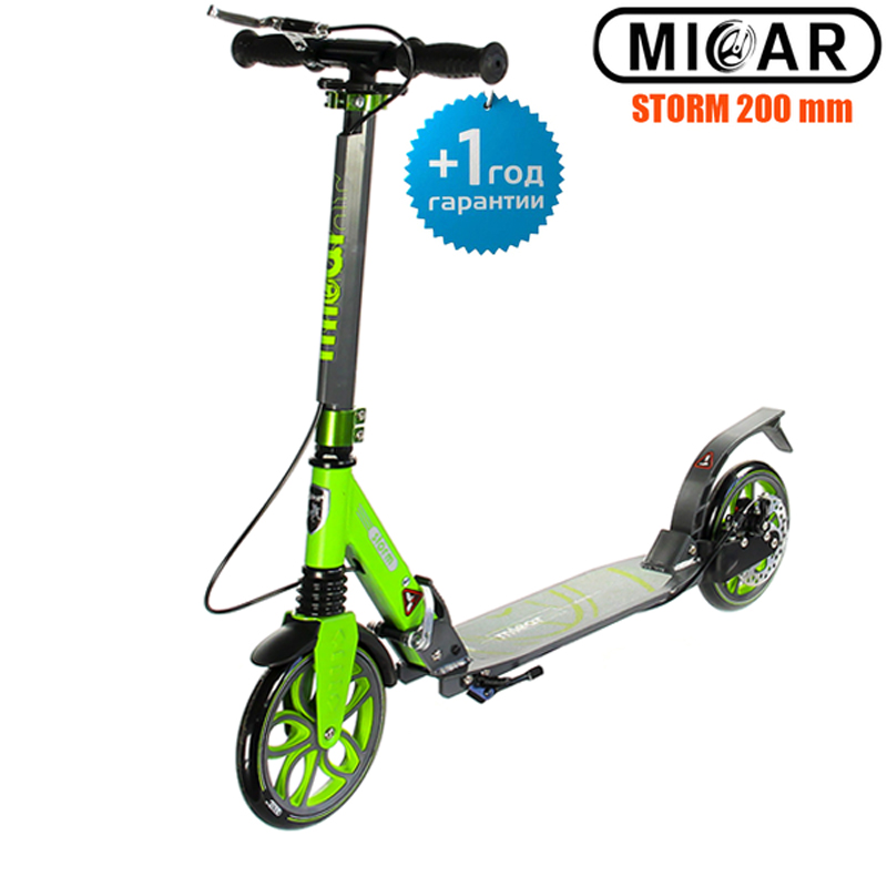 Двухколёсный самокат micar storm 200 серо-зелёный. Амортизатор передний и задний Вес самоката 5.9* кг Возрастная категория От 6-7 лет Гарантия производителя 1 год Дополнительные функции подставка, специальный зажим для ручек на руле Максимальная нагрузка 100 кг Материал рамы 100% Алюминий Подшипники ABEC-7 608zz Размер колёс 200 мм Размер платформы 34 х 14 см Регулируемая высота руля 82-105 см Тормоз Ручной дисковый тормоз заднего колеса, ножной тормоз над задним колесом