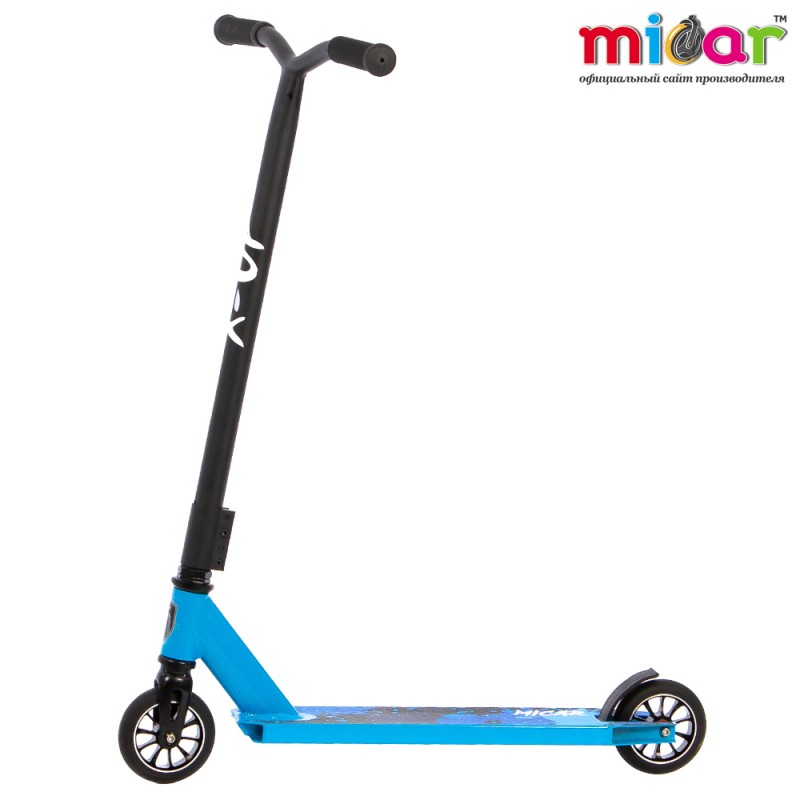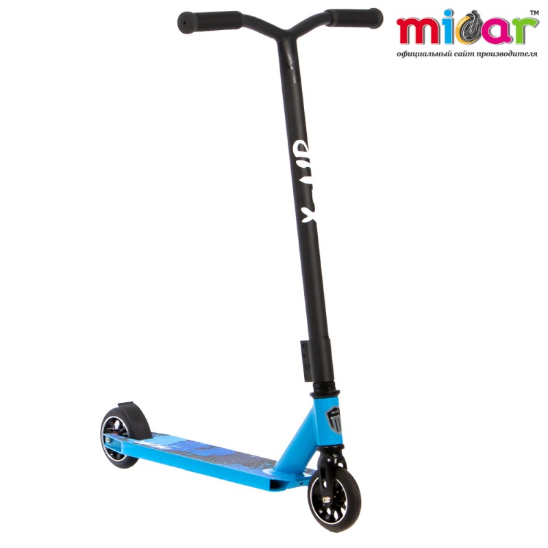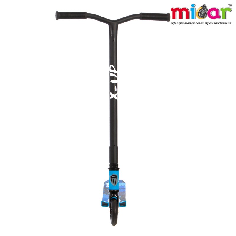 Трюковой самокат micar x-up синий. Вес самоката 3.2 кг Высота руля 600 мм Грипсы Мягкие резиновые Дека Алюминий Зажим 4-х болтовой, алюминиевый Подшипники ABEC 9 Размер деки 105 х 500 мм Размер колес 110 х 24 мм Руль Стальной Тормоз Стальной Ширина руля 480 мм
