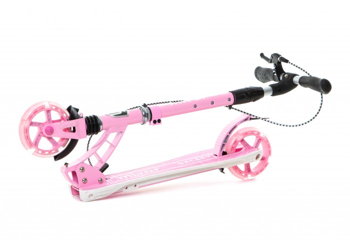 Двухколёсный самокат micar galaxy 145 розовый (арт. ht1411). Амортизатор Передний Вес самоката 4.3 кг Возрастная категория От 4 лет Гарантия производителя 1 год Дополнительные функции Складной самокат, передний амортизатор, ручной тормоз, светящиеся колёса Макс. высота руля от пола 89 см Максимальная нагрузка 100 кг Материал рамы 100 % Алюминий Мин. высота руля от пола 74 см Подшипники ABEC 11 Размер колёс 145 мм Размер платформы 32 x 10-15 см Размеры коробки - Д x Ш x В 67 см x 15 см x 25 см Регулируемая высота руля 74-89 см Тормоз Ручной тормоз заднего колеса, ножной тормоз  развернуть описание ▼