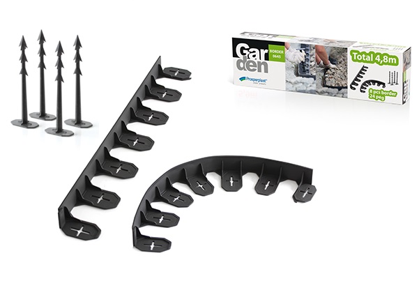 Бордюр для сада border 0645. Садовый пластиковый бордюр для сада Border 0645 является важным элементом дизайна участка и придает саду ухоженный и аккуратный вид. Бордюр предназначен для зонирования и ограждения клумб, цветников, альпийской горки, газонов, дорожек, грядок и прогулочных зон. Простота монтажа позволяет легко и быстро установить бордюры без дополнительных инструментов. Гибкость пластикового бордюра для клумб позволяет придать ограждению любую желаемую форму. Обрамления для клумб и цветников важны не только с эстетической точки зрения, но и с практической, так как они помогают сдерживать быстро разрастающиеся декоративные растения. • Размер: 480х8,4х4,5 см • Материал: пластик • Количество бордюров: 8 штук • Количество колышков: 24 штуки • Цвет: антрацит • Размер упаковки: 64,5х18х9,5 см • Вес брутто: 2,033 кг • Производитель: Prosperplast • Страна: Польша