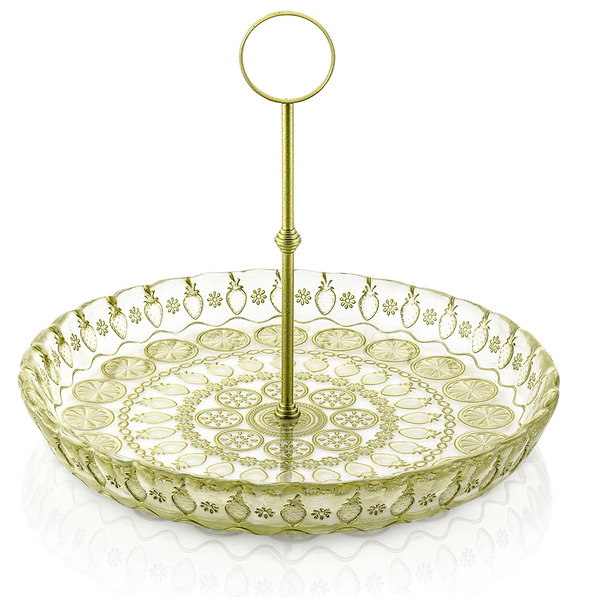 Блюдо для фруктов с ручкой 32см витамины (зеленый узор)