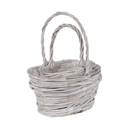 Корзина плетеная из ротанга в стиле прованс в полиэтиленовой вставкой. Может быть использована: - для упаковки подарков, подарочных наборов, цветочных композиций; - для хранения и транспортировки различных предметов и продуктов; - как декоративный элемент интерьера. Все наши корзины изготовлены из экологически чистого материала, который не воздействует на продукты. Наименование: Набор корзин для флористики Артикул: J14044 S/2 Цвет: светлый (прованс) Размер: 19*13*h9/22hh, 15.5*10*h8/17hh Состав: ротанг