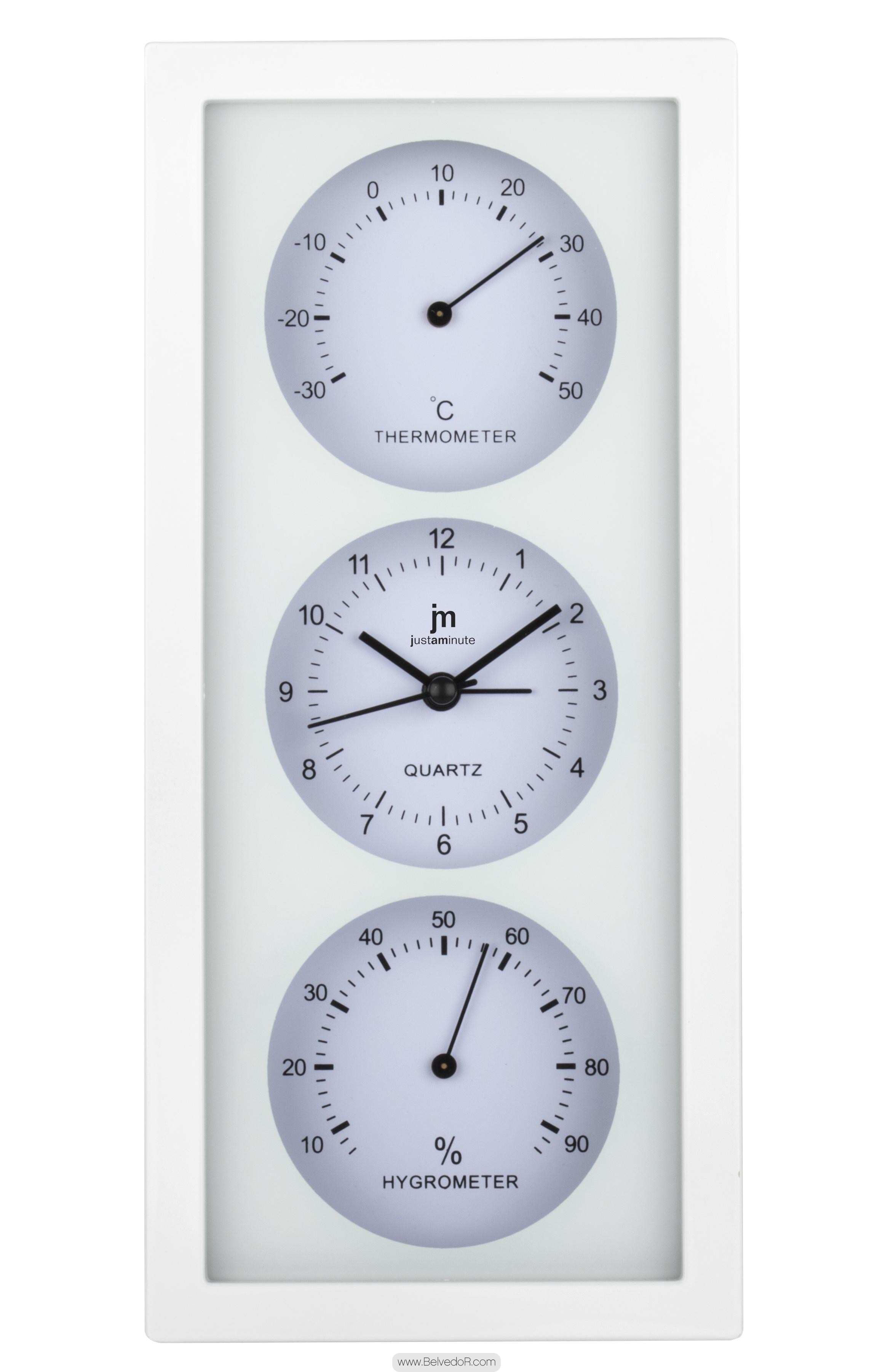 Кварцевые часы с будильником, гигрометром и термометром в современном стиле. Могут использоваться как настенные или настольные. Матовый корпус. Электронный сигнал, бесшумный механизм с плавным ходом секундной стрелки.