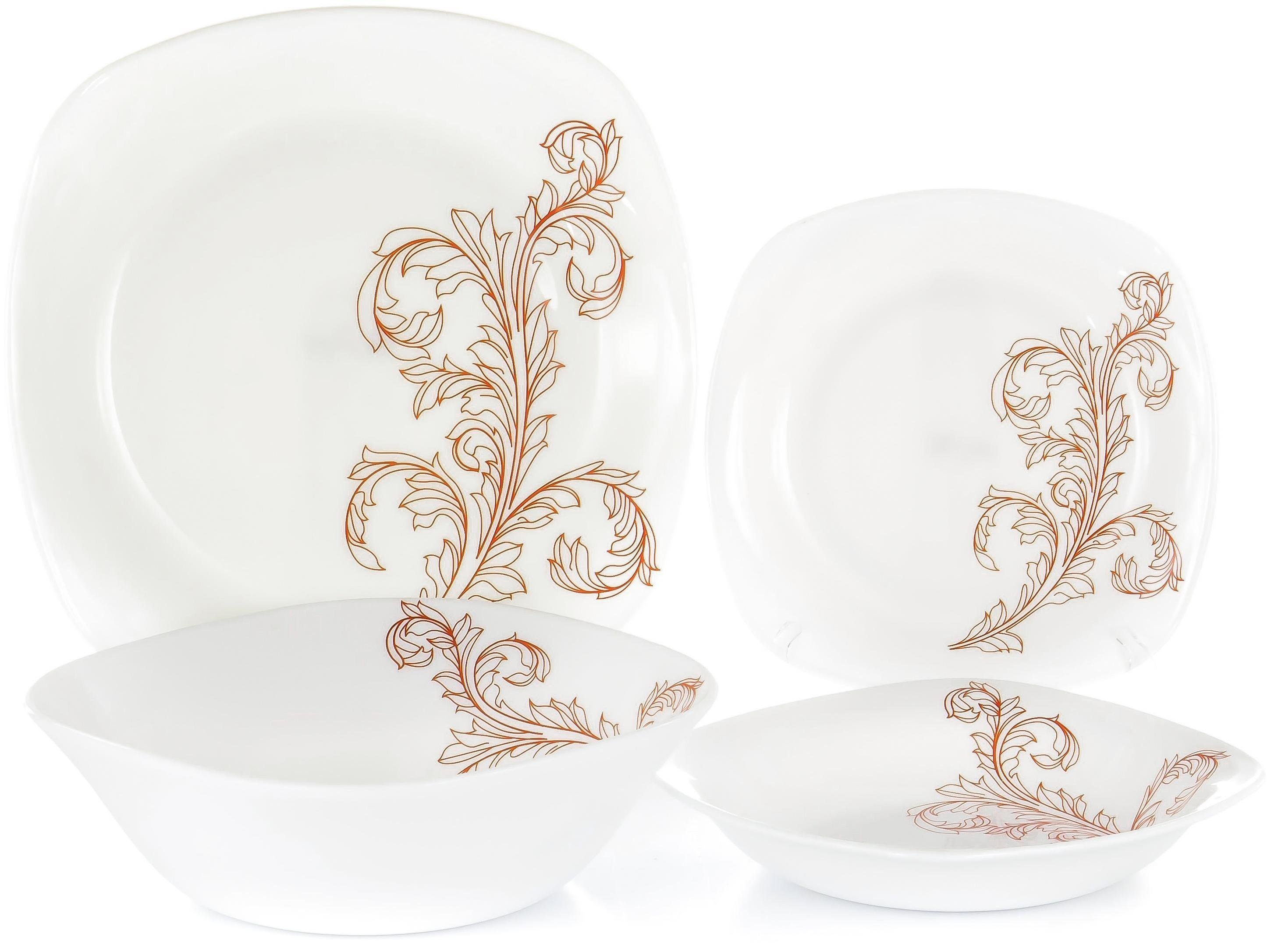 Мелкая тарелка 19см: 6 шт Глубокая тарелка 20см 6 шт Мелкая тарелка 24см 6 шт Салатник 1200мл 1 шт