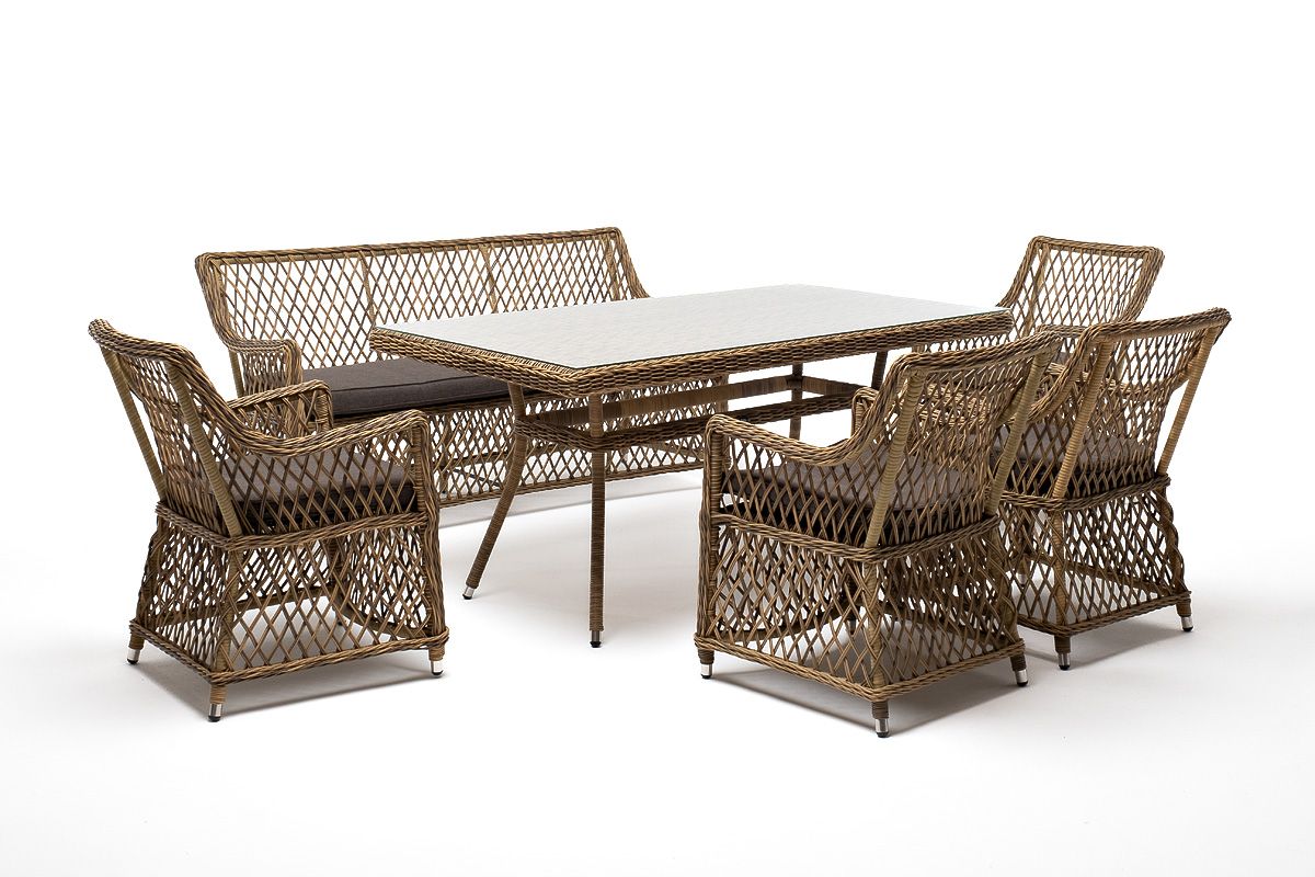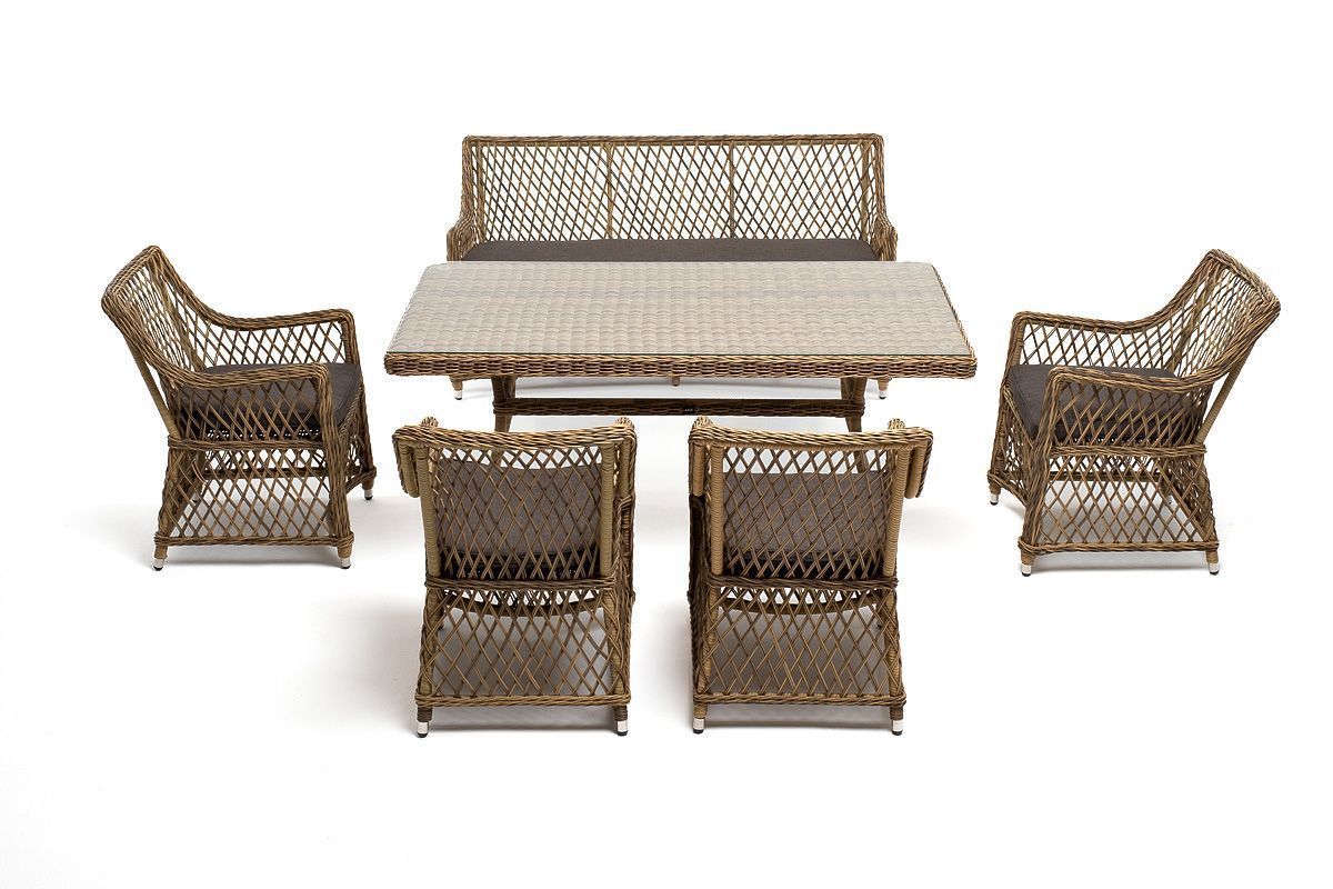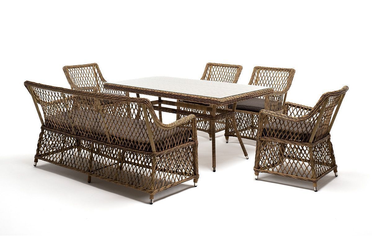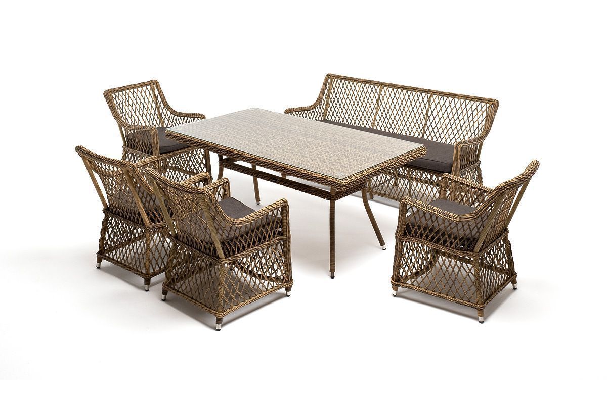 Катания обеденная группа плетеная на 6 персон, цвет соломенный