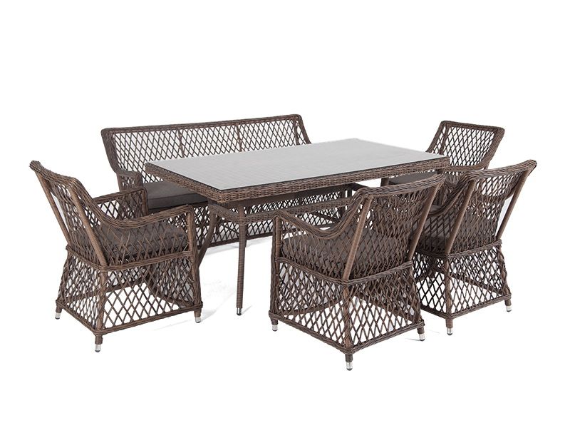Катания обеденная группа плетеная на 6 персон, цвет коричневый