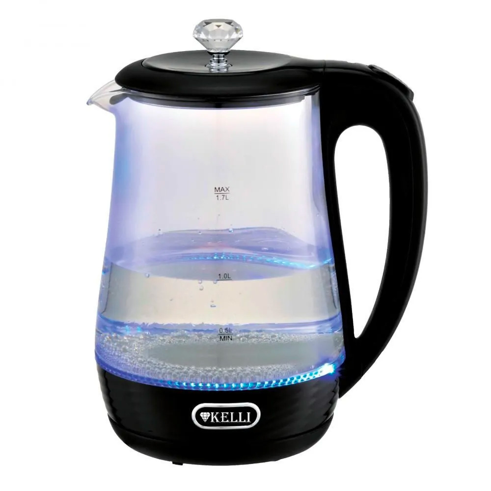 Чайник стеклянный kelli kl-1404 электрический, 1.7 л черный. Объем: 1.7л Термостойкое стекло Внутренняя подсветка Кнопка ВКЛ/ВЫКЛ Автоматическое отключение Поворачивающийся корпус на 360° Закрытый нагревательный элемент Защита от перегрева 220-240В, 50Гц, 1850-2200Вт Основные Объем, л 1.7 Мощность, Вт 2200 Тип управления Механическое Тип нагревательного элемента Закрытая спираль Автоотключение Да Настройка температуры Нет Управление со смартфона Нет Общие Страна-изготовитель Китай Бренд Kelli Тип Электрический чайник Корпус Материал корпуса Пластик/стекло Подсветка Да Конструкция Конструкция чайника: Вращение подставки на 360°, Индикатор уровня воды, Светоиндикатор работы Дополнительные Цвет Черный