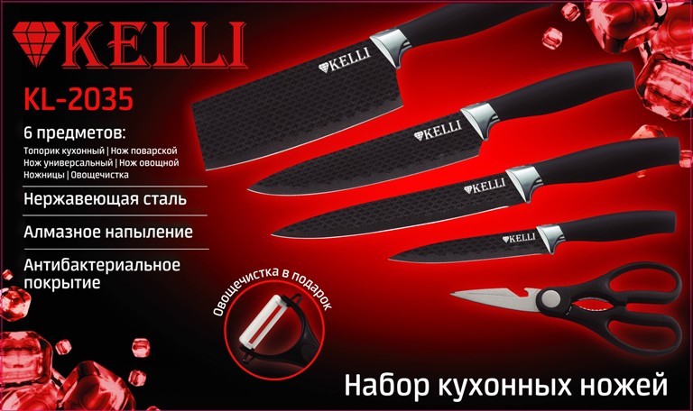 Набор кухонных ножей Kelli 6 предметов с алмазным покрытием