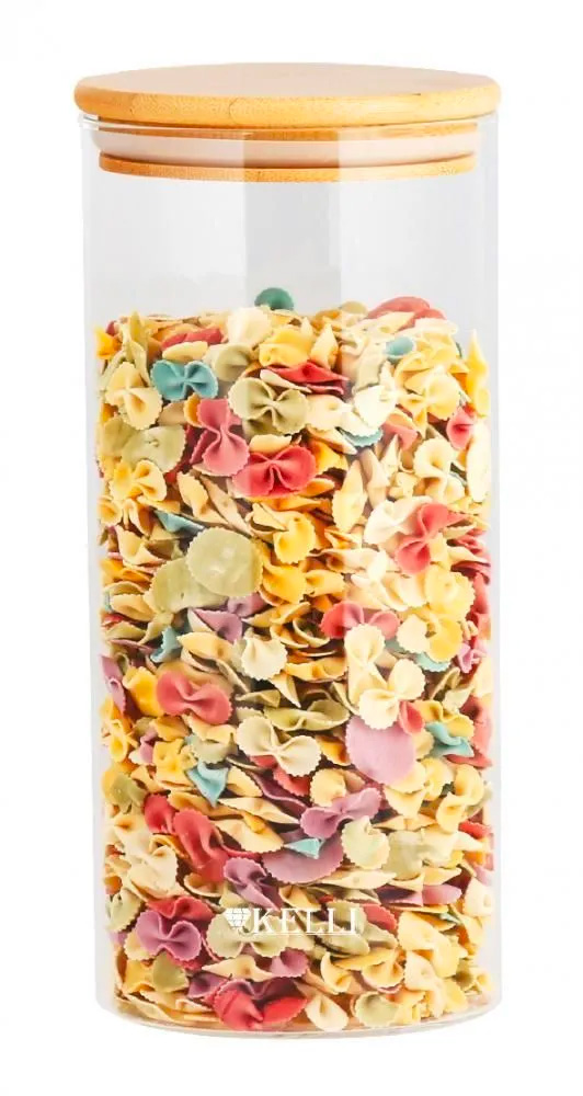 Стеклянная банка Kelli Kl-3287 с бамбуковой крышкой, объём 1 л
