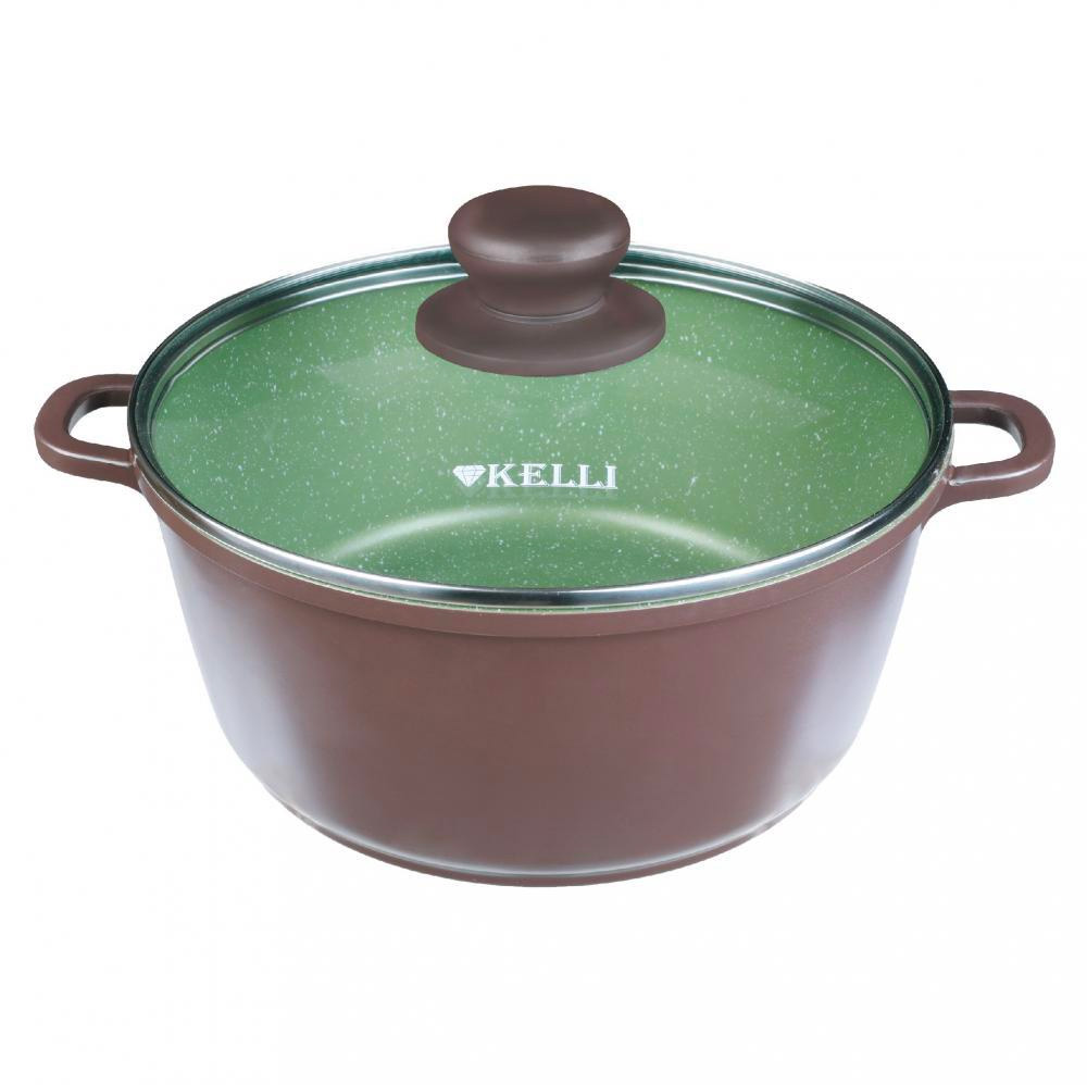 Кастрюля с крышкой Kelli Green Marble, 8л, 28см, коричневый