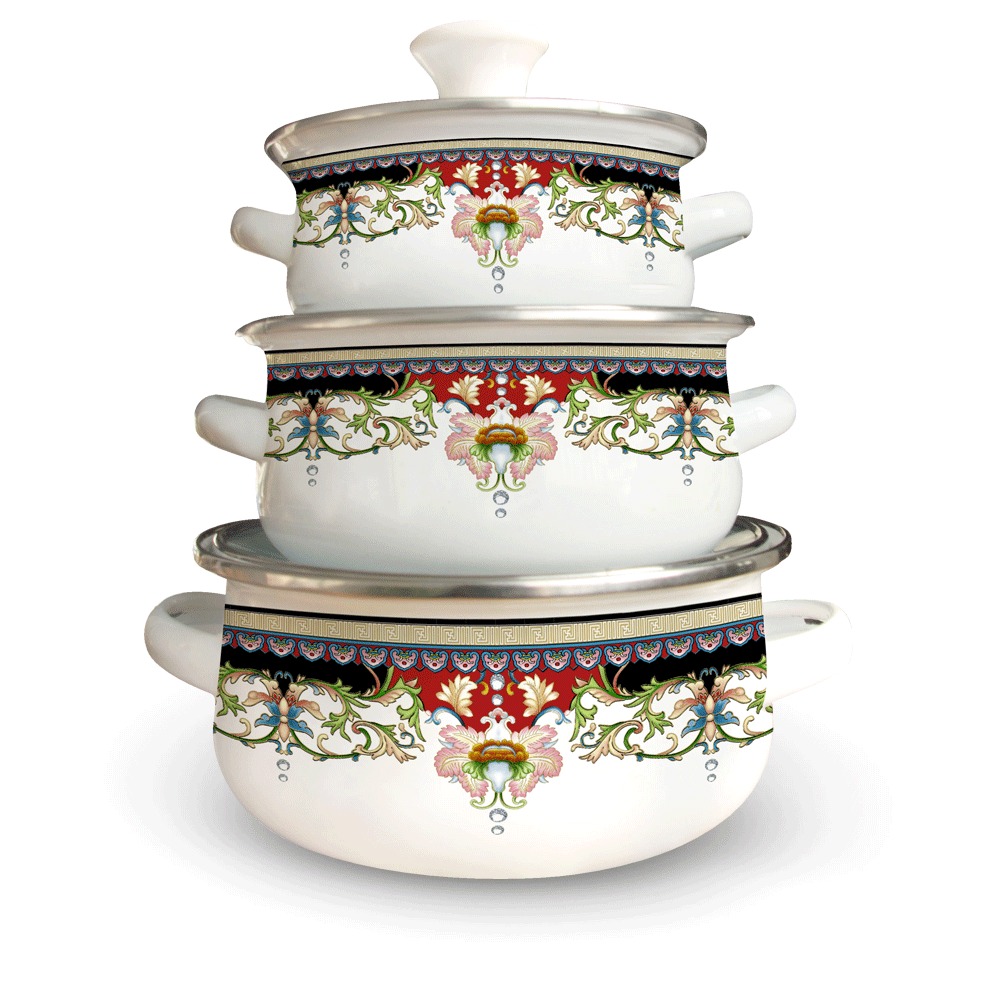 Набор из 3 эмалированных кастрюль Kelli Mini 0.5/0.7/1.1 л с крышками из жаропрочного