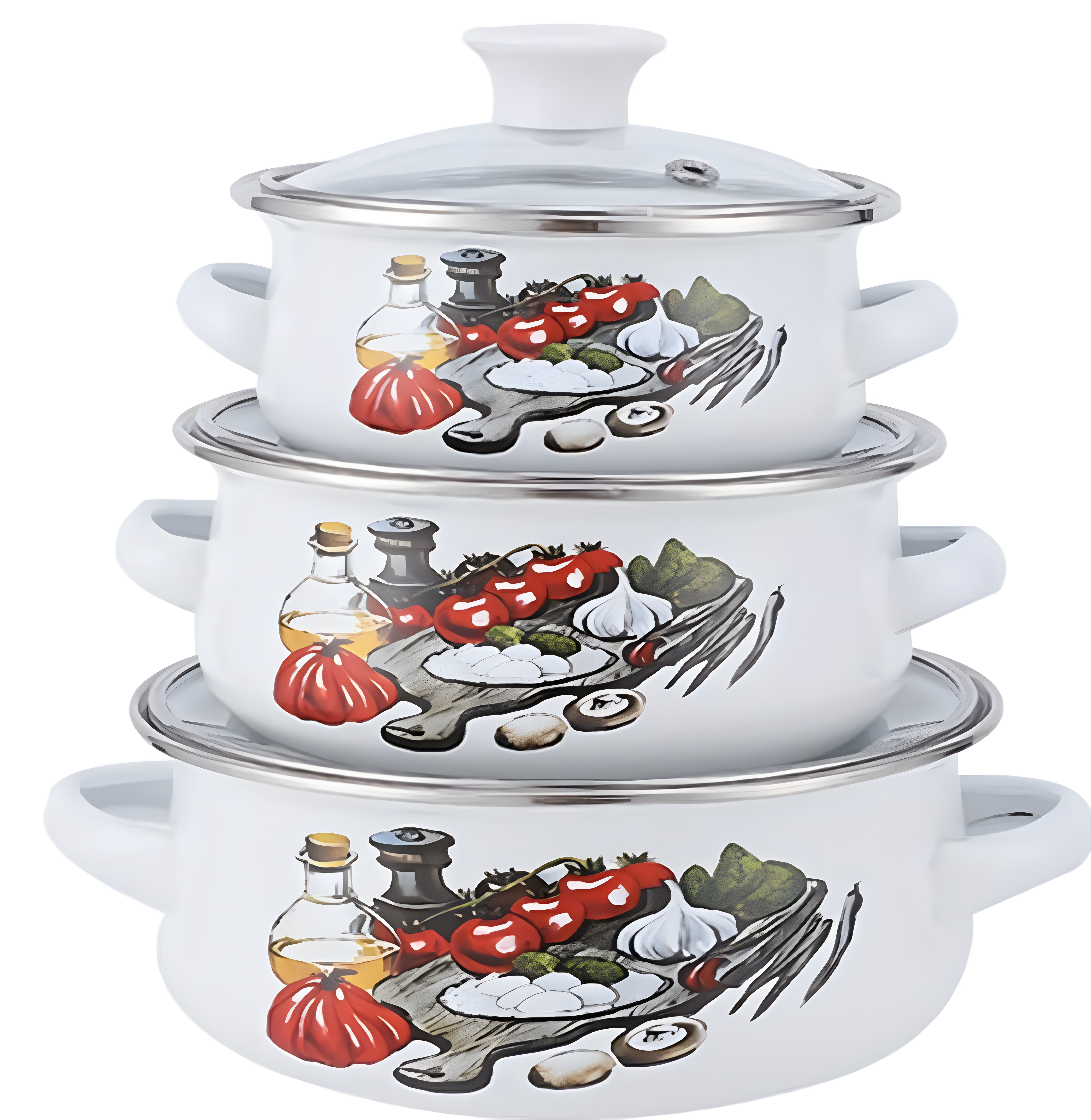Набор из 3 эмалированных кастрюль 0.5/0.7/1.1 л с крышками Kelli