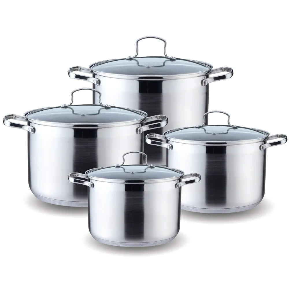 Набор кастрюль со стеклянными крышками 2,1 + 3 + 4 + 6,5 л kl-4207 . Размер - 16 см 18 см 20 см 24 см Объем - 2.1 л 3 л 4 л 6.5 л Набор посуды Kelli KL-4207 практичная посуда для приготовления мяса, овощей, голубцов, солянки, жаркого, плова и прочих вкусностей. В качестве материала изготовления используется нержавеющая сталь. Преимущества: Посуда сделана из высококачественной нержавеющей стали 18/10. Жаропрочные крышки с паровыпуском. Удобные ручки для переноски. Чтобы изделия прослужили как можно дольше, не используйте абразивные чистящие средства, которые могут оставить царапины и повреждения на поверхности. Комплектация Набор кастрюль со стеклянными крышками 2.1 л + 3 л + 4 л + 6.5 л Характеристики Общие Бренд Kelli Серии - Страна-изготовитель Китай Комплектация Крышка с крышкой Материал Антипригарное покрытие Нет Материал Нержавеющая сталь Габариты и вес Объем, Л 2,1 л, 3 л, 4 л, 6,5 л Размер крышки, см 24 Диаметр дна, см 20 Вес товара, г 4000 Высота стенки, см 14 Основные Особенности посуды Можно мыть в посудомойке, Крышка в комплекте Дополнительные Тип Набор кастрюль Вид блюда Суп Упаковка Картонная коробка Цвет Серебристый Вид выпуска товара Фабричное производство Совместимые плиты : Для газовых плит, Для галогеновых конфорок, Для индукционных плит, Для стеклокерамических плит, Для электрических плит