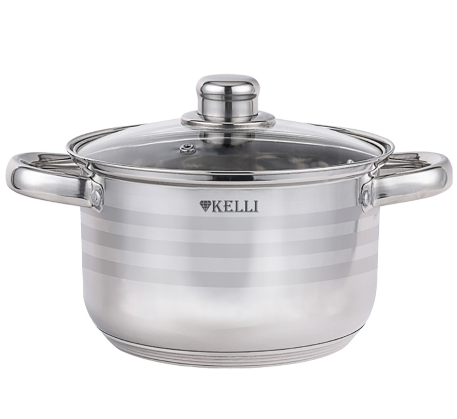 Кастрюля 3.5 л Kelli Stripes нержавеющая сталь 20 см с крышкой, индукционная