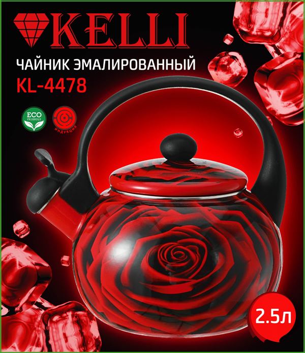 Эмалированный чайник со свистком Kelli 2.5л Эмалированный чайник со свистком Kelli 2.5л