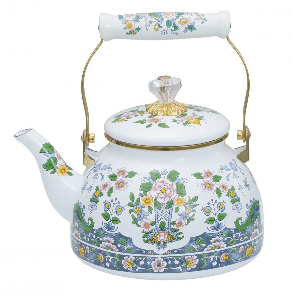 Чайник для газовой плиты эмалированный 3 л Kelli, индукционный, белый, металлический 3 литра