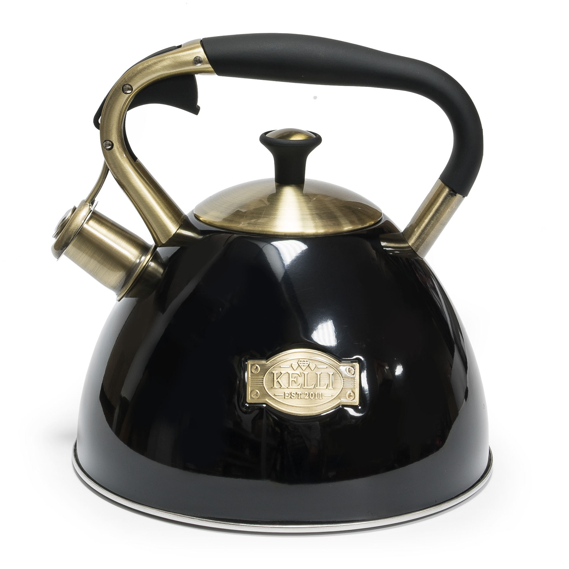 Чайник колокольчик 3л, Kelli черный, нержавеющая сталь, свисток, термо дно