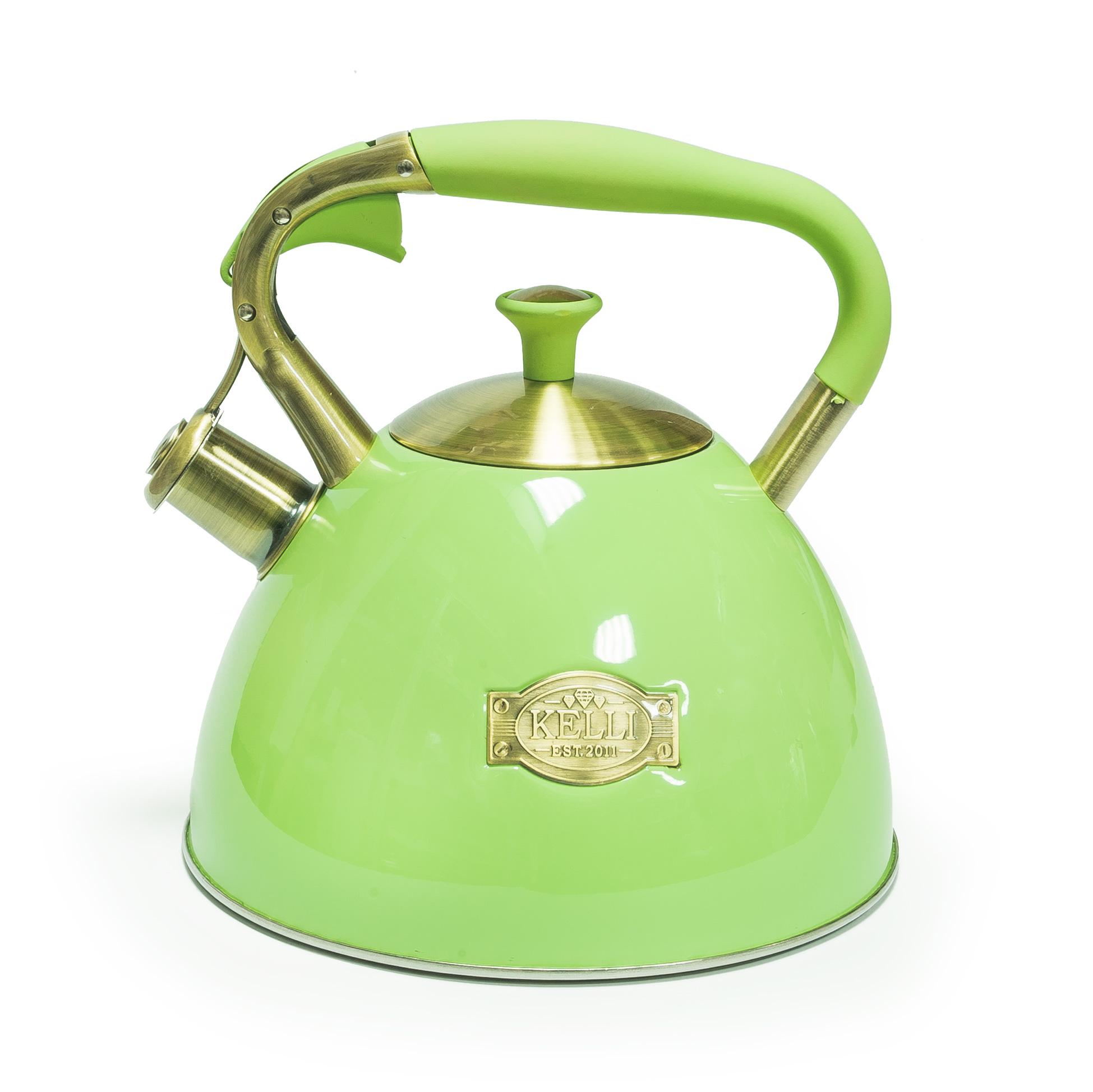 Чайник колокольчик 3л, Kelli зеленый, нержавеющая сталь, свисток, термо дн
