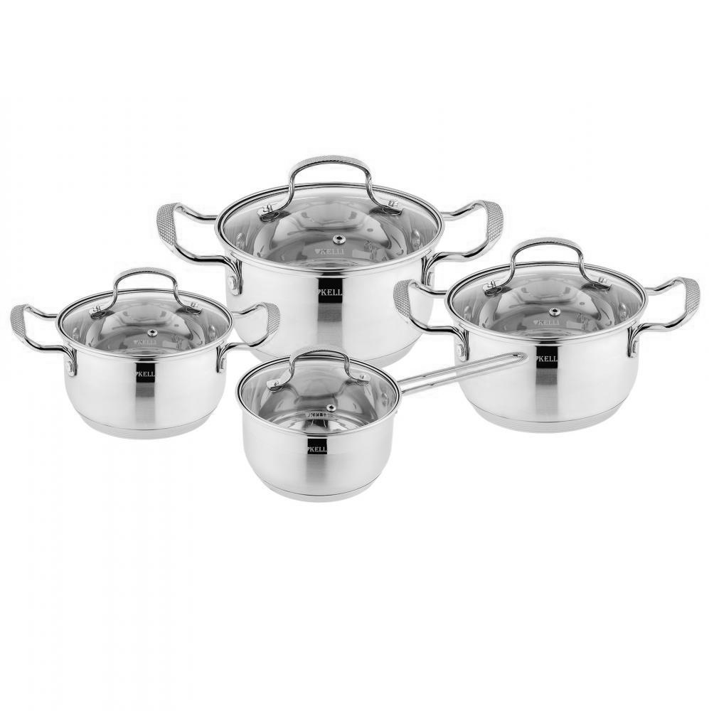Набор посуды Kelli Kl-4706 8 пр обьём 2,0л 2,6л 3,8л ковш 1,4л нерж сталь