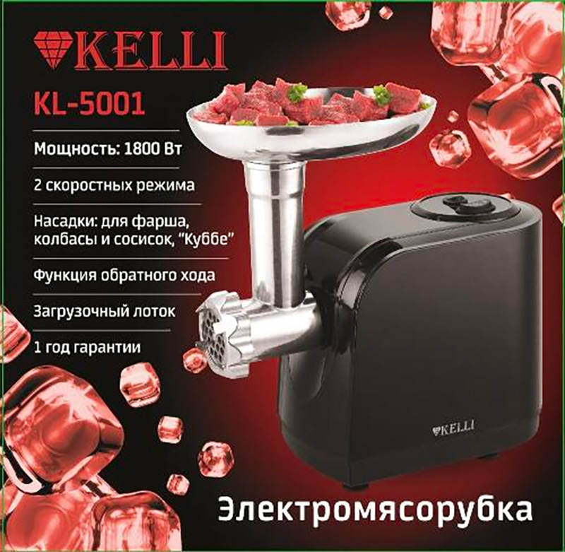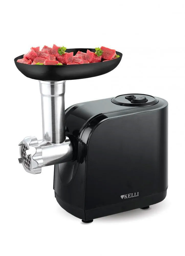 Мясорубка электрическая kelli kl-5001, 1800 вт, черная. Мясорубка KELLI KL-5001 оснащена мощным электрическим двигателем, который обеспечивает производительность 1,5 кг/мин. Устройство поддерживает реверсивный ход, что упрощает извлечение застрявших кусков мяса и овощей. В комплекте поставляется насадка «Кеббе», которая позволяет пользователю готовить домашние колбаски. Мясорубка оснащена тремя решетками с отверстиями разного диаметра. Насадки можно складывать в специальное отделение. Это упрощает хранение и предотвращает потерю деталей. Нож произведен из нержавеющей стали. Материал характеризуется высокой прочностью, стойкостью к механическому воздействию и износу. Это исключает деформацию и затупление изделия. Мощность: 1800Вт. 2 скоростных режима. Насадки: для фарша, колбасы и сосисок, "Кеббе". Прорезиненные ножки. Полностью разборный блок. Металлический загрузочный лоток. Нож из высококачественной нержавеющей стали. Защита двигателя от перегрузки. Функциональные особенности измельчителей продуктов Реверс Материал корпуса Пластик Конструктивные особенности измельчителей продуктов Прорезиненные ножки Материал лотка Металл Размеры, мм 240х200х280 Вес товара, г 3700 Основные Производительность, кг/мин 1.5 Тип Мясорубка Мощность, Вт 1800 Макс. мощность (при блокировке мотора), Вт 1600 Количество насадок 5 Количество скоростей 2 Насадки приборов для измельчения продуктов Для колбас/сосисок, Для фарша, Кеббе Бренд Kelli Системы защиты Защита от перегрузки (автоматический предохранитель) Общие Страна-изготовитель Китай Гарантийный срок 12 мес. Дополнительные Реверс Да Цвет Черный
