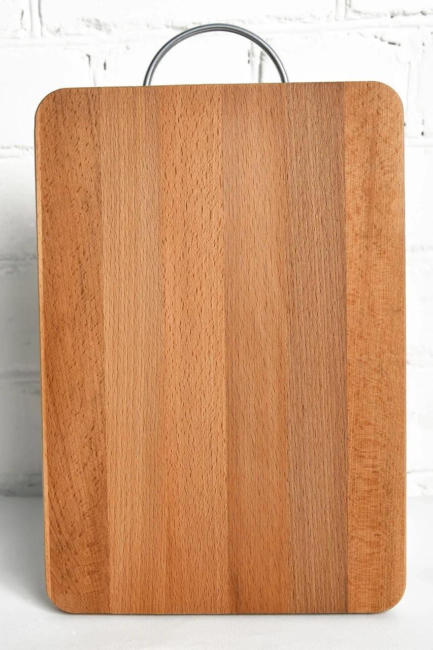 Доска разделочная прямоугольная 35х24,5х1,8 см из бука с металлической руч. Описание: Разделочная доска — одно из самых необходимых приспособлений на кухне. Ведь нам всегда приходится что-то резать, рубить, измельчать, шинковать и выполнять другие необходимые действия во время готовки. Согласитесь, хорошая кухонная доска во многом облегчает приготовление блюд. Но выбрать такую порой бывает нелегко. Всё дело в разнообразии материалов, из которых делают эту утварь. Если вам приходилось выбирать разделочную доску, вы наверняка задумывались, какая из них более практична, гигиенична и безопасна. Разделочная доска из бука. Данное изделие считается экологичным и прочным, и кроме того разделочная доска из дерева идеально впишется в любой интерьер кухни. Прочный материал позволит эксплуатировать доску долгое время, а классический дизайн придется по вкусу многим хозяйкам. Особенности: Деревянные разделочные доски необходимо хранить в открытом пространстве, не в тумбочках, шкафах и т. д. Разделочные доски из дерева нужно мыть после каждого использования и хорошо просушивать, опять же не в шкафчиках. Если дерево впитало неприятный запах, можно протереть его лимоном или уксусом. Это нейтрализует запах. Перед тем, как доску начать использовать, пропитайте ее маслом (льняным, можно и обычным подсолнечным рафинированным). Это нужно делать периодически в процессе использования разделочной доски из дерева. Тем самым доска прослужит вам дольше.