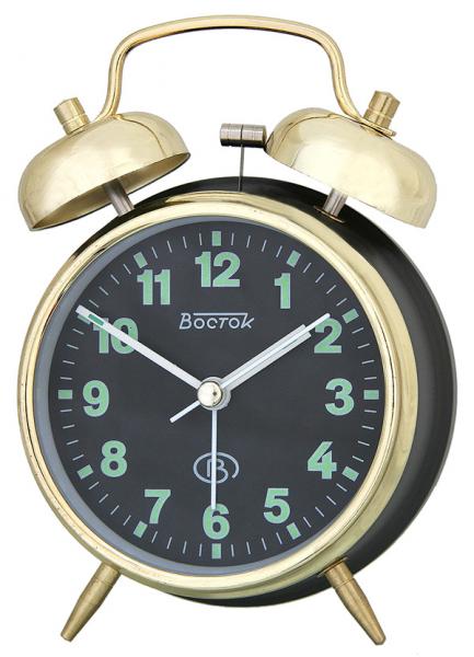Будильник восток k 823-12. Механический звонок Размеры: 75х75х45 Механизм: кварцевый шаговый Корпус: металл Будильник: Bell Подсветка: нет Питание: AA 1 шт.