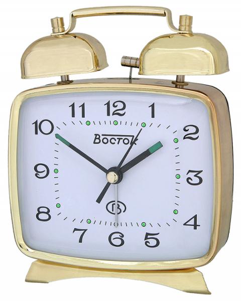 Будильник восток k 824-5. Механический звонок Размеры: 100х85х55 Механизм: кварцевый шаговый Корпус: металл Будильник: Bell Подсветка: нет Питание: AA 1 шт.