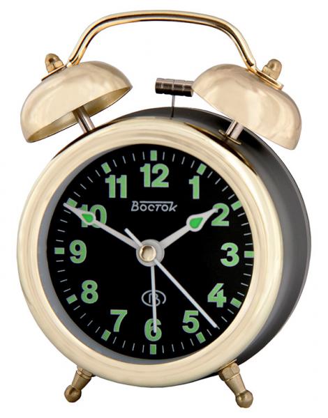 Будильник восток k 877-12. Механический звонок Размеры: 70х70х50 Механизм: кварцевый шаговый Корпус: металл Будильник: Bell Подсветка: обычная Питание: AA 1 шт.