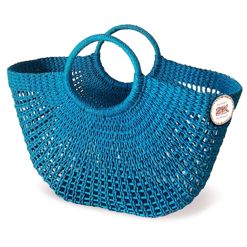 Стильная плетеная сумка ярко-лазурного цвета из бумажно-текстильной ленты. Изделие выполнено в технике плотного жгутового плетения. Эксклюзивная осенняя коллекция. Оригинальная и изысканная вещь в рамках ведущих тенденций моды. Плетеные сумки актуальны в любое время года. Это экологичное изделие для ярких и неординарных личностей. Сумки в нашей осенней коллекции разных цветов, и вы можете подобрать себе подходящую модель для вашего образа и гардероба. Наименование: Сумка плетеная Артикул: LD1407S Цвет: голубой Размер: ширина верха: 46 см. ширина основания: 17 см. высота: 37.5 см Состав: бумажно-текстильная лента
