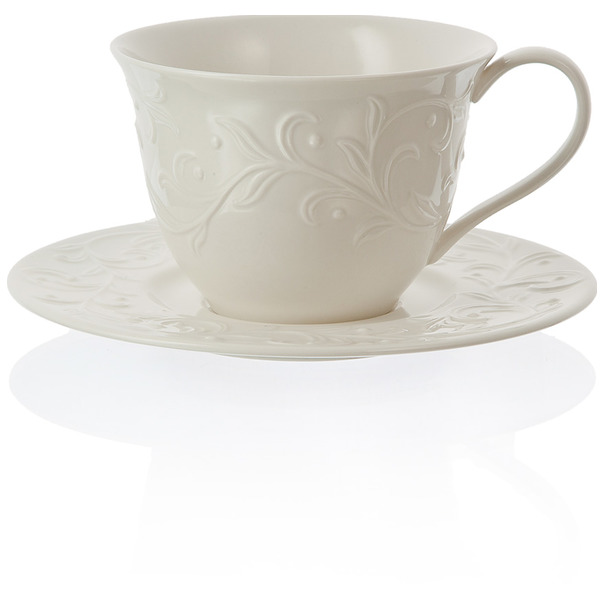 Чашка чайная с блюдцем 350мл чистый опал, рельеф