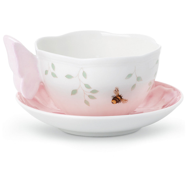 Чашка чайная с блюдцем Lenox бабочки на лугу 240мл (фигурная ручка), (розо
