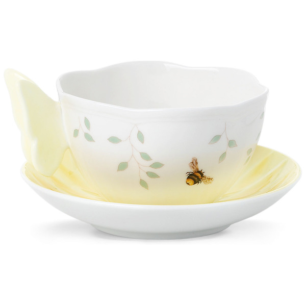 Чашка чайная с блюдцем 240мл бабочки на лугу (фигурная ручка) (желтый)