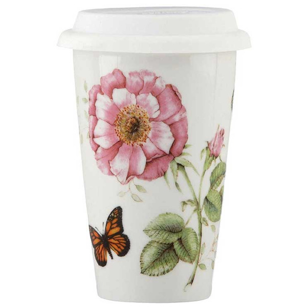 Термокружка с крышкой 360мл бабочки на лугу
