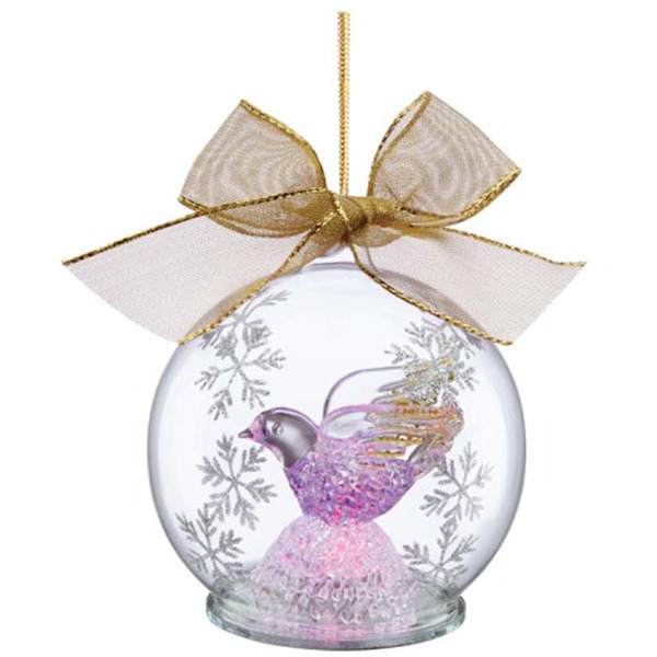 Украшение новогоднее, шар с бантом 10см голубь (светящийся)