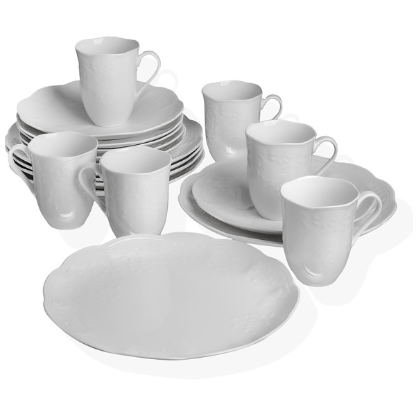 Сервиз столовый 6/18 бабочки на лугу (белый,рельеф)