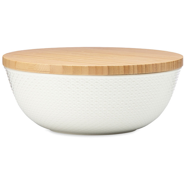 Салатник круглый с крышкой 26см праздник 365, рельеф (белый)