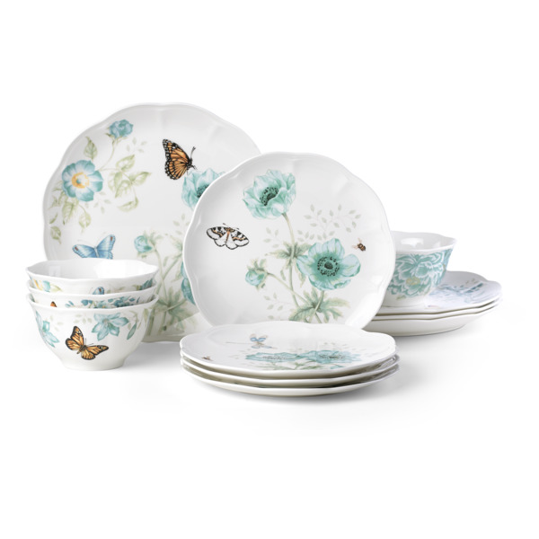 Сервиз столовый Lenox бабочки на лугу на 4 персоны, 12 предметов (бирюза)