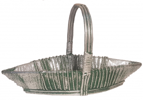 Наименование: Корзина плетеная из ивовой лозы №1 Артикул: LM171222 S/3 Цвет: зеленый с серебром Размер: длина: 60 см, ширина: 28 см, высота борта: 12 см, общая высота: 34 см Состав: ивовая лоза, фанерное дно