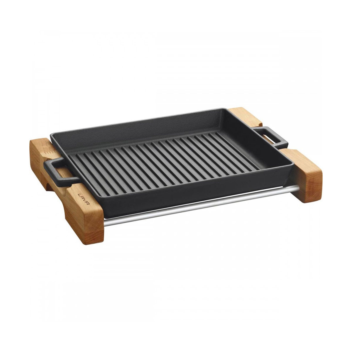 Сковорода гриль квадратная с 2мя ручками и деревянной подставкой 26x32cm.